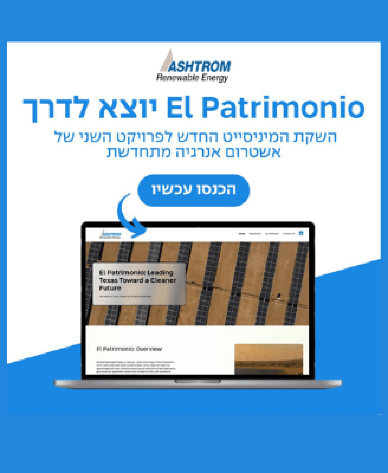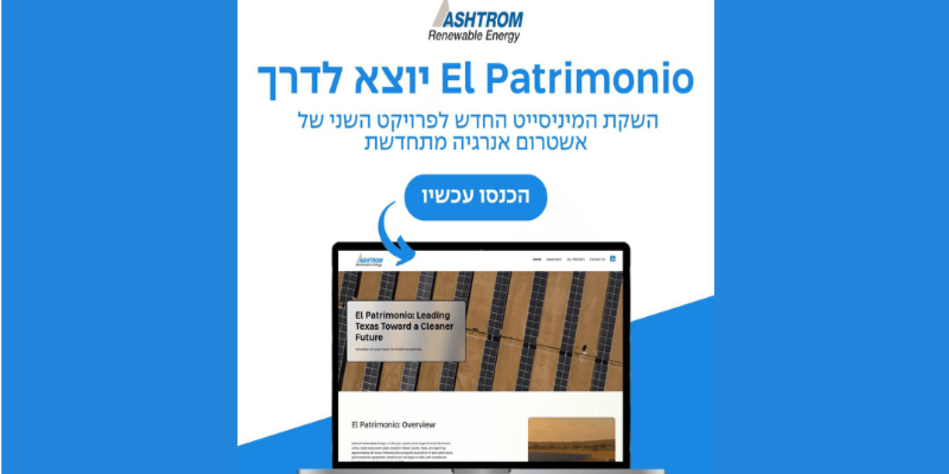 הפרויקט הסולארי El Patrimonio בטקסס, שמפתחת ומקימה אשטרום אנרגיה מתחדשת מקבוצת אשטרום, נכנס לשלבי הקמה – צעד משמעותי בביצוע אחד מהפרויקטים הסולאריים הגדולים של החברה בארה״ב. פרויקט זה מצטרף לפרויקט Tierra Bonita של החברה, שנמצא כבר בהפעלה.