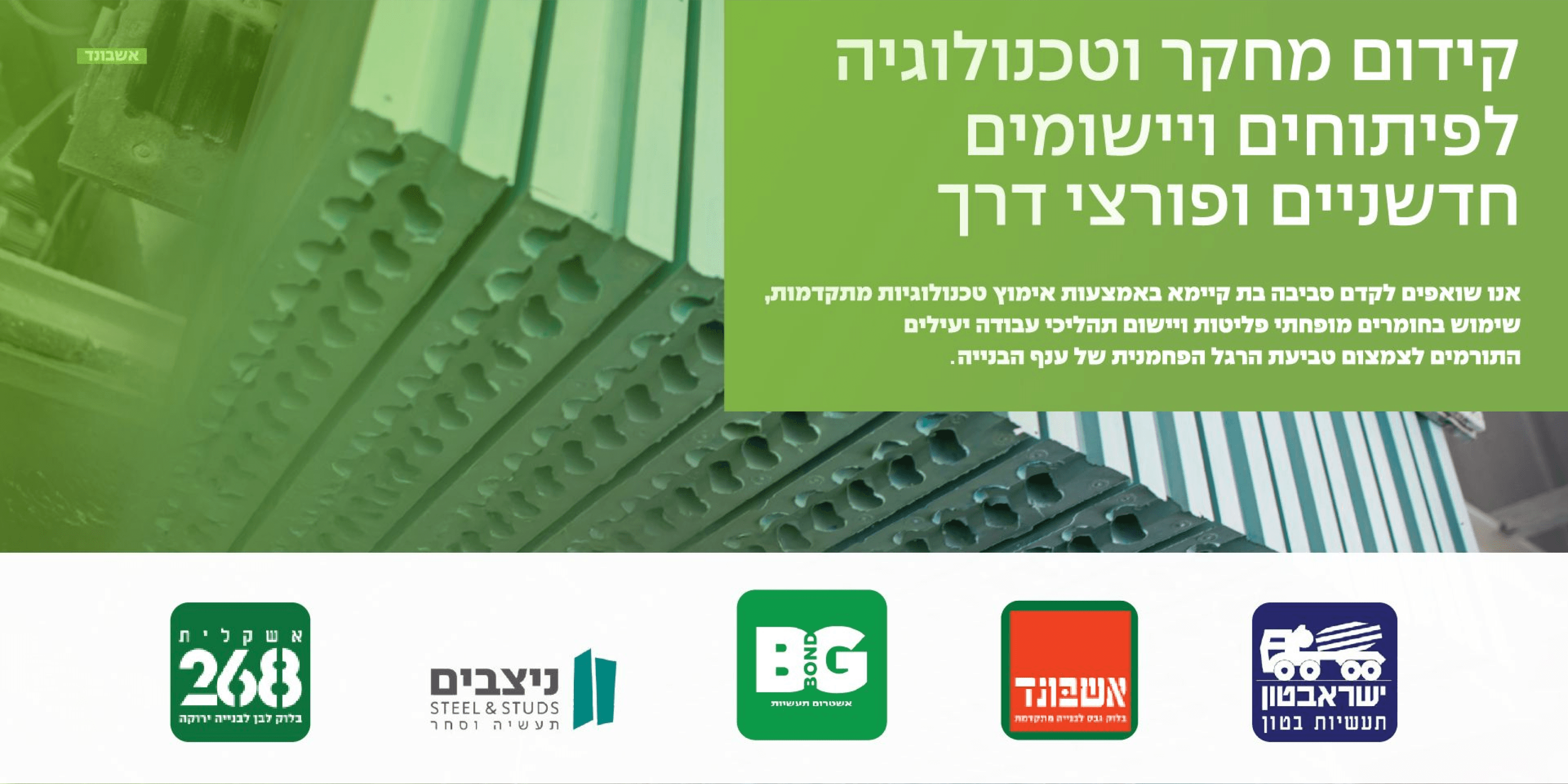 קבוצת אשטרום משקיעה באופן שיטתי במחקר, פיתוח ויישום של חומרי בנייה חדשניים, מתוך תפיסה שחדשנות היא מנוע מרכזי ליצירת ערך ארוך טווח - סביבתי, הנדסי ועסקי.