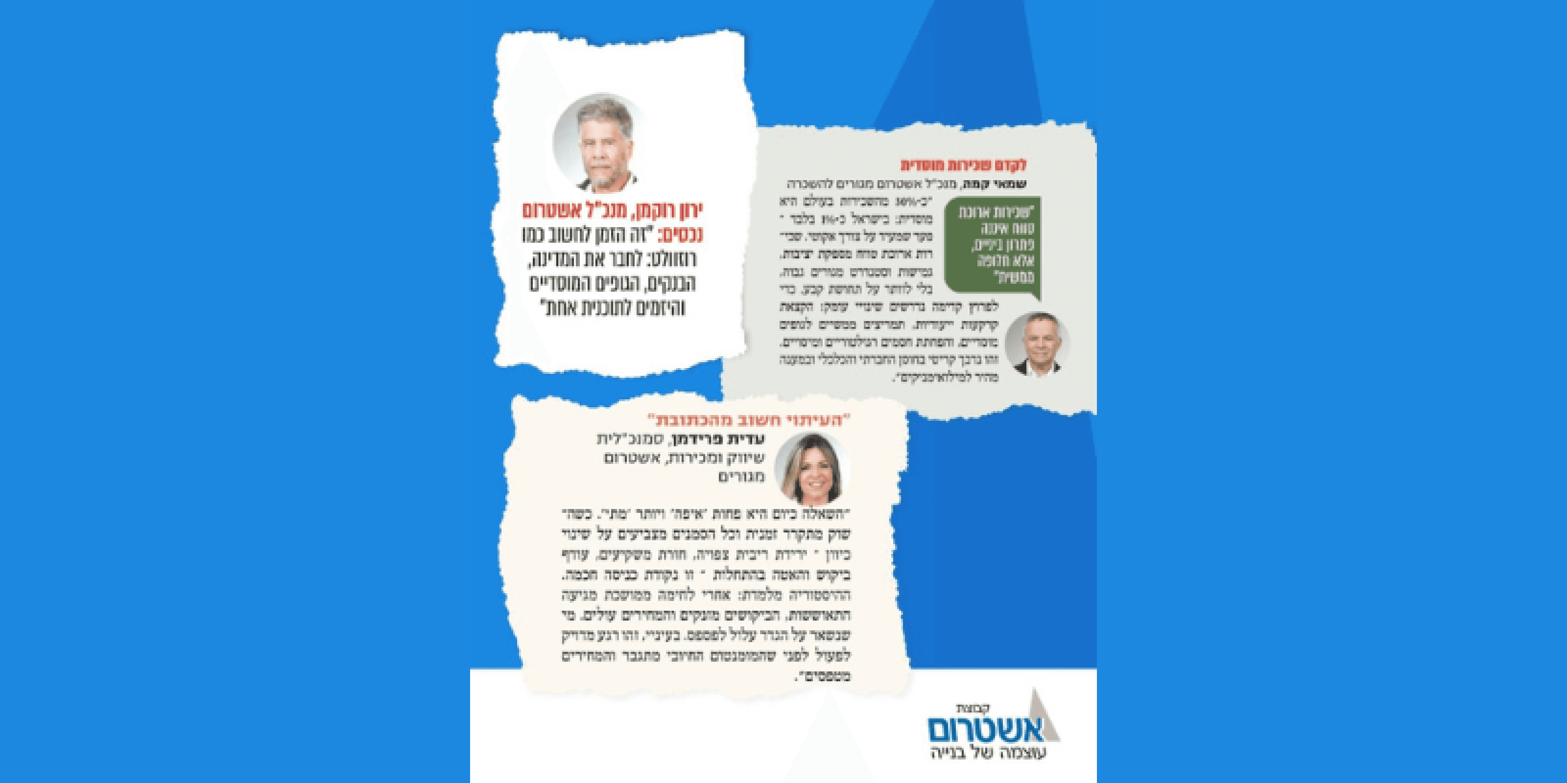 במוסף הנדל"ן של ישראל היום הוצגו שלוש מזרועות הפעילות של קבוצת אשטרום